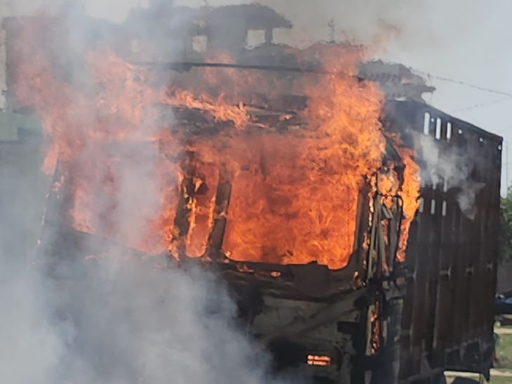 पुलिस चौकी से करीब 10 किमी दूर कूड़े के ढेर पर खड़े एक ट्रक में अचानक आग लग गई।