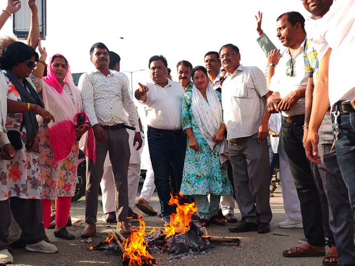 भाजपा नेता का पुतला फूंकते कांग्रेसी