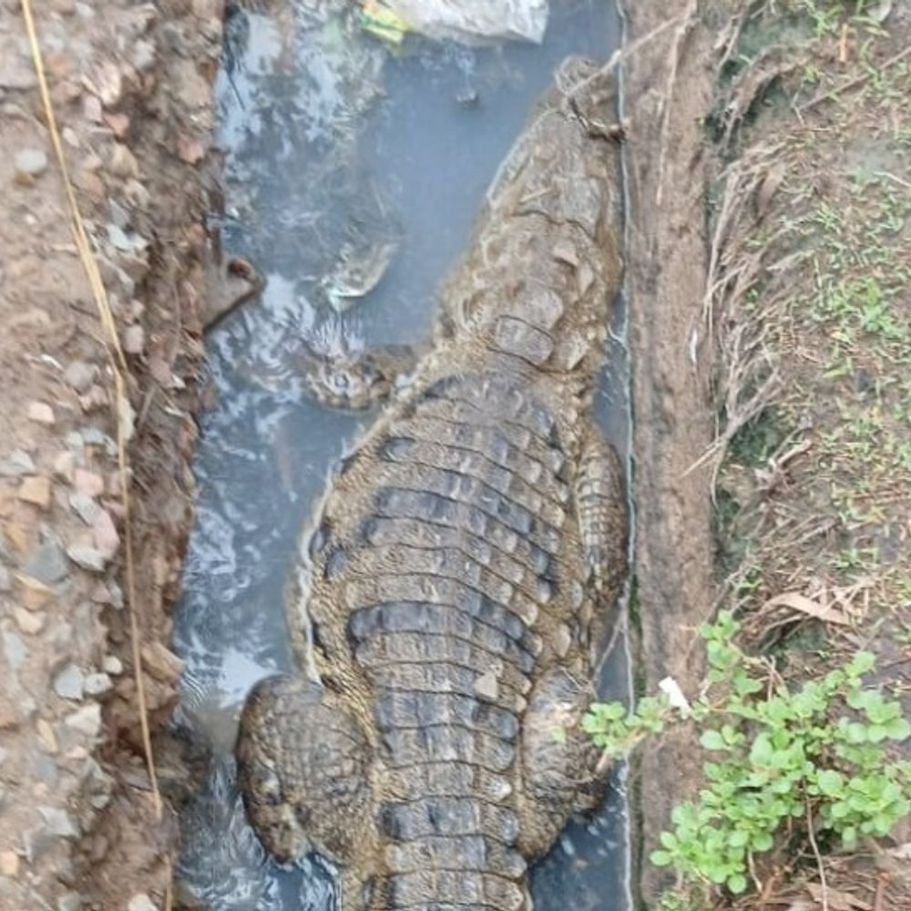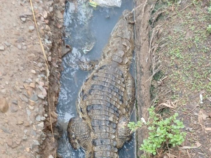 ग्रामीणों ने तुरंत वन विभाग को सूचना दी। मगरमच्छ को देखकर गांव में दहशत का माहौल बन गया। स्थानीय लोग मगरमच्छ पर नजर रखे रहे। शोर-शराबे से घबराकर मगरमच्छ एक नाली में छिप गया।
