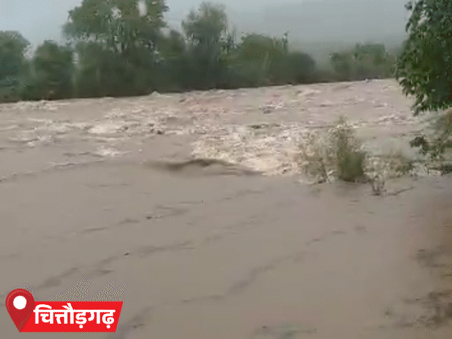 राजस्थान के चित्तौड़गढ़ में गुंजाल नदी उफान पर है।