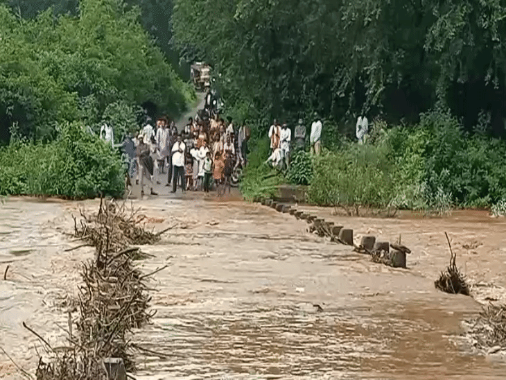 राजस्थान के कोटा में मोड़क कस्बे में बाढ़ के हालात हैं। घर, स्कूल, हॉस्पिटल, एटीएम तक में चार-चार फीट तक पानी भरा है। चित्तौड़गढ़ में गूंजली नदी का पानी पुल के ऊपर से तक बह रहा है। आधा दर्जन से अधिक गांवों का संपर्क कट गया है।