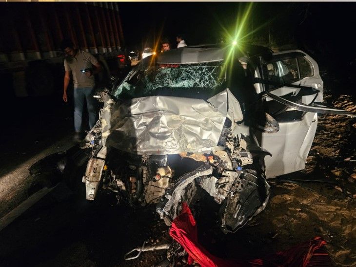 कार के आगे का हिस्सा पूरी तरह क्षतिग्रस्त हो गया।