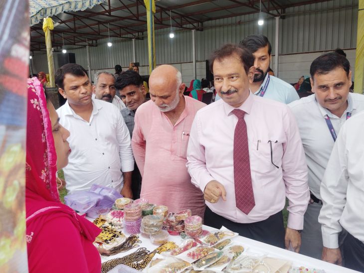 शिविर में जानकारी लेते हुए बैक अधिकारी।