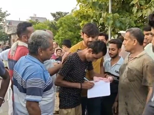 शिकायत लिखते हुए कॉलोनी के लोग।