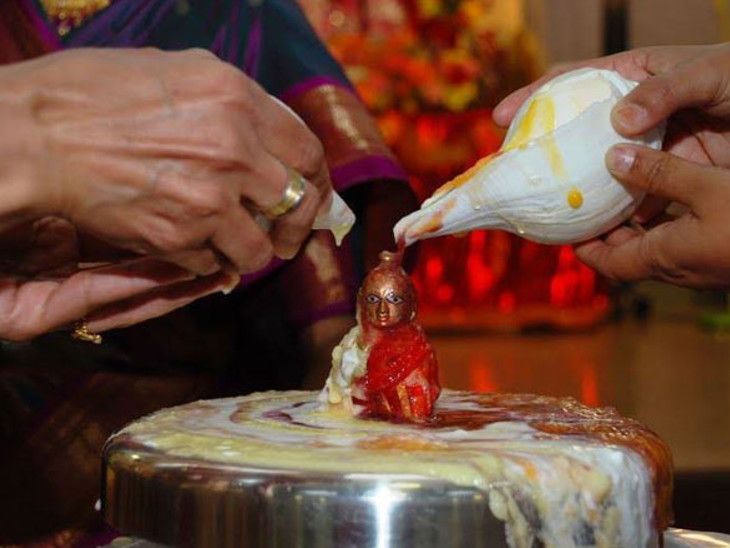 - बाल गोपाल की प्रतिमा को दूध, दही, शहद, घी व गंगाजल से स्नान कराया जाता है। अभिषेक किया जाता है।