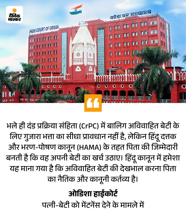 यह मामला बारगढ़ का है। तलाक के केस में पति जी देवेंद्र राव ने अपनी पत्नी और बेटी को गुजारा भत्ता देने से मना कर दिया। फैमिकोर्ट में दलील दी गई कि उनकी पत्नी पढ़ी लिखी है। वह एमए, एलएलबी है। टीचर और LIC एजेंट है, इसलिए उसे गुजारा भत्ता का हक नहीं है। उनकी बेटी एडल्ट हो चुकी है। इसलिए सेक्शन 125 CrPC के अंतर्गत मेनटेनेंस नहीं मांग सकती।