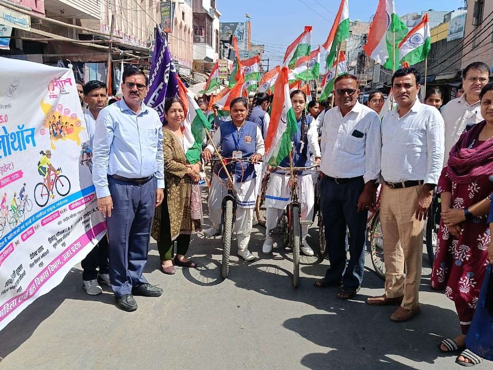 हापुड़ में मिशन शक्ति 5.0 विशेष अभियान के तहत महिलाओं की सुरक्षा, सम्मान और स्वावलंबन के लिए साइकिल रैली का आयोजन किया गया। रैली की शुरुआत रेलवे पार्क से हुई। मुख्य विकास अधिकारी हिमांशु गौतम और लेफ्टिनेंट कपिल विसला ने हरी झंडी दिखाकर रैली को रवाना किया।