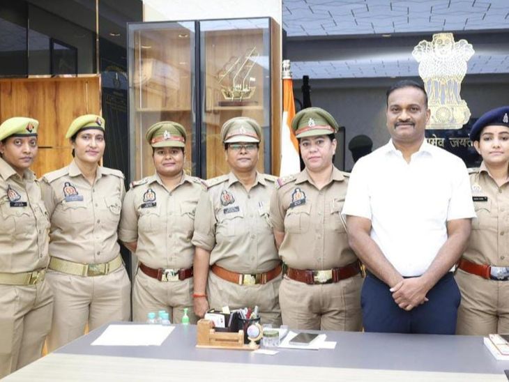 एनकाउंटर करने वाली महिला पुलिस टीम के साथ पुलिस कमिश्नर जे. रविंदर गौड, साथ में एसीपी उपासना पांडे