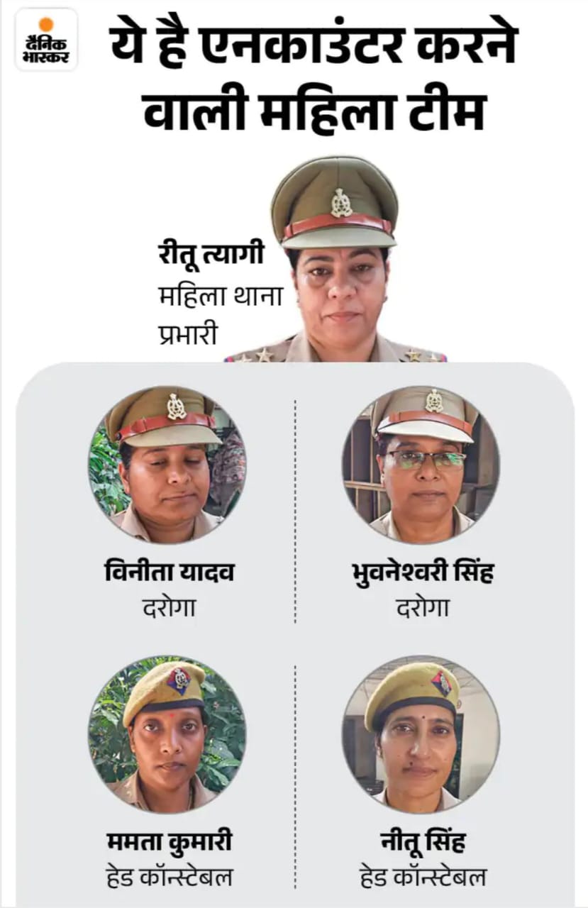 एसआई राजेश्वरी: सर मुझे पुलिस में 25 साल हो गए। हम चेकिंग कर रहे थे, जब वह स्कूटी छोड़कर भागा उसने तमंचा निकाला तो तभी हम पीछे हट गए। हमें पता था कि तमंचे से यह एक फायर करेगा। उसके बाद हमारी टीम ने उस पर फायरिंग की। जिसके बाद पकड़ा। घायल को उसे कंधों पर लाया गया। हमारी दोनों महिला कांस्टेबलों ने कहा था कि इसे हम भागकर भी पकड़ लेंगे।
