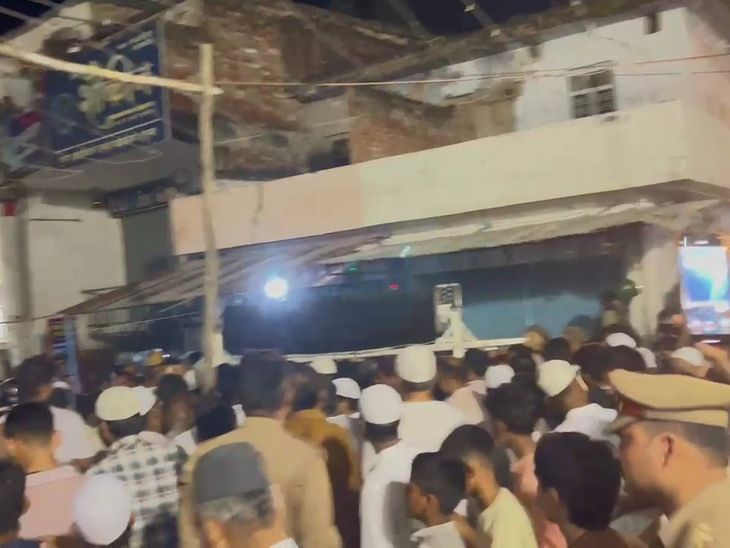 आजमगढ़ में मासूम की डेडबॉडी पहुंचने के बाद जुटी भारी भीड़।