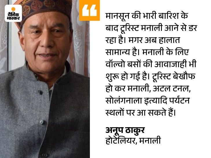 वहीं मनाली में भी 10 फीसदी ऑक्यूपेंसी हो गई है। मनाली में वॉल्वो बसों की आवाजाही बीते कल से शुरू हो गई है। इसके बाद मनाली में रविवार तक 30 प्रतिशत ऑक्यूपेंसी होने की उम्मीद है। होटेलियर अनूप ठाकुर ने बताया कि मनाली में टूरिस्ट को 50 प्रतिशत तक छूट दी जा रही है। यह छूट अगले कुछ दिन जारी रहेगी।