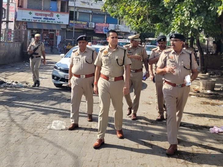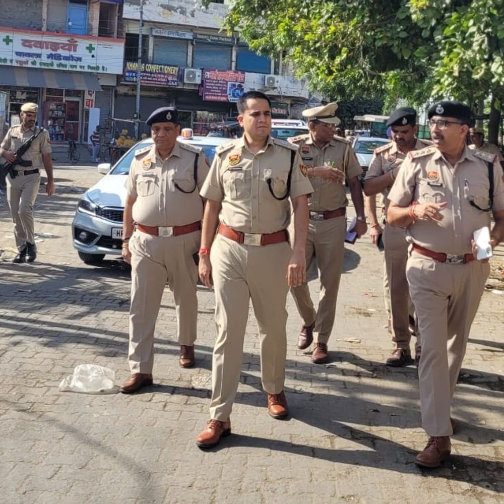 हांसी में बाजारों का निरीक्षण करते हुए एसपी अमित यशवर्धन।