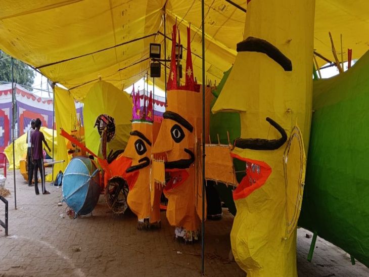 डीग के कारीगर गुड्डू ने बताया कि हर साल अलवर में रावण तैयार करते हैं। इस बार 20 दिन से टीम रावण के पुतले बनाने में लगी है। पुतले बनाने में बांस, लकड़ी व कागज का काम लिया जाता है। इस बार पुतले दूर से नजर आएंगे। जिसे पहले की तुलना में चमकीला अधिक बनाया है।