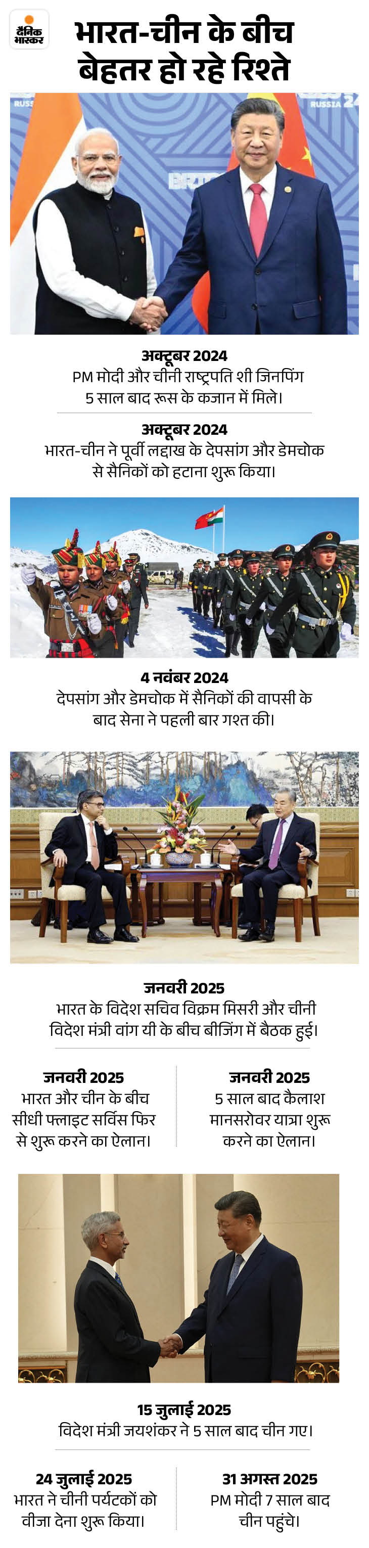 हाल के कुछ सालों में, खासकर 2025 की शुरुआत से भारत और चीन ने अपने रिश्तों को सामान्य करने के लिए कदम उठाए हैं। अमेरिकी टैरिफ वॉर ने भी भारत-चीन को करीब आने में मदद की है।