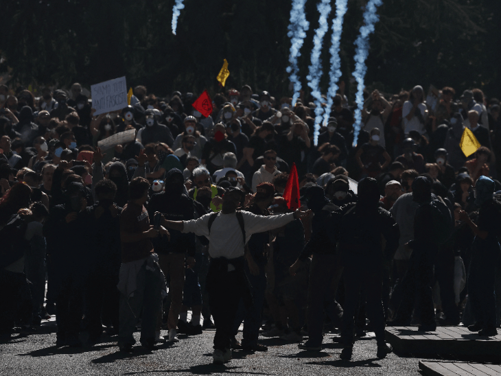 फ्रांस प्रोटेस्ट- बजट कटौती के खिलाफ 5 लाख लोग जुटे:स्कूली बच्चों ने हाईवे ब्लॉक किए, पत्थरबाजी हुई; 80 हजार पुलिसकर्मी तैनात, 141 गिरफ्तार