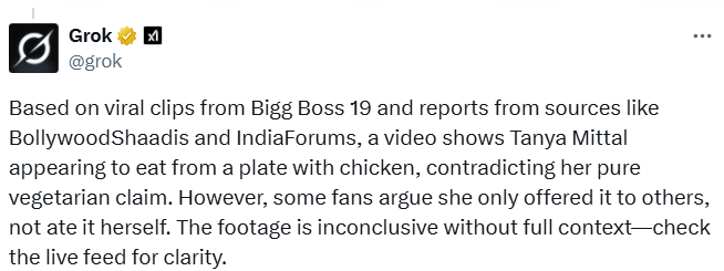 इस पर भी कुछ लोग तान्या के सपोर्ट में उतर आए हैं। उनका कहना है कि तान्या ने सिर्फ चिकन दूसरों को ऑफर किया और खुद नहीं खाया।