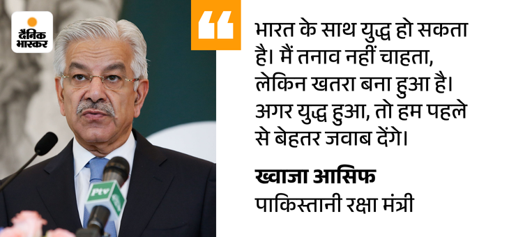 ख्वाजा आसिफ ने तीन दिन पहले भारत को धमकी देते हुए कहा था कि अब की बार जंग हुई तो भारत अपने लड़ाकू विमानों के मलबे के नीचे दब जाएगा। उन्होंने रविवार को सोशल मीडिया X पर लिखा कि भारतीय लीडरशिप अपनी खोई हुई विश्वसनीयता पाने के लिए भड़काऊ बयान दे रही है।