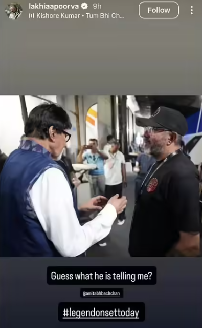 डायरेक्टर अपूर्व लखिया ने हाल ही में अपने आधिकारिक सोशल मीडिया अकाउंट से अमिताभ बच्चन के साथ एक तस्वीर शेयर कर लिखा है, सोचिए वो मुझे क्या कह रहे हैं। हैशटैग लीजेंट ऑन द सेट टुडे। अमिताभ बच्चन।