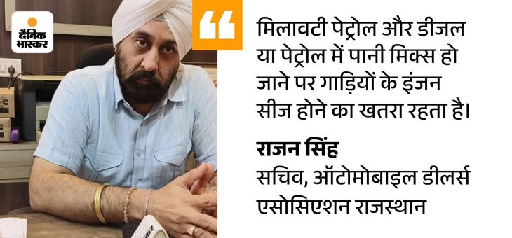 एथेनॉल और पानी के मिश्रण का असर समझने के लिए भास्कर ने जयपुर के वैशाली नगर स्थित दाता फिलिंग स्टेशन पर राजस्थान पेट्रोलियम डीलर्स एसोसियेशन के कोषाध्यक्ष संदीप बगोरिया के मौजूदगी में रियलिटी चैक किया…