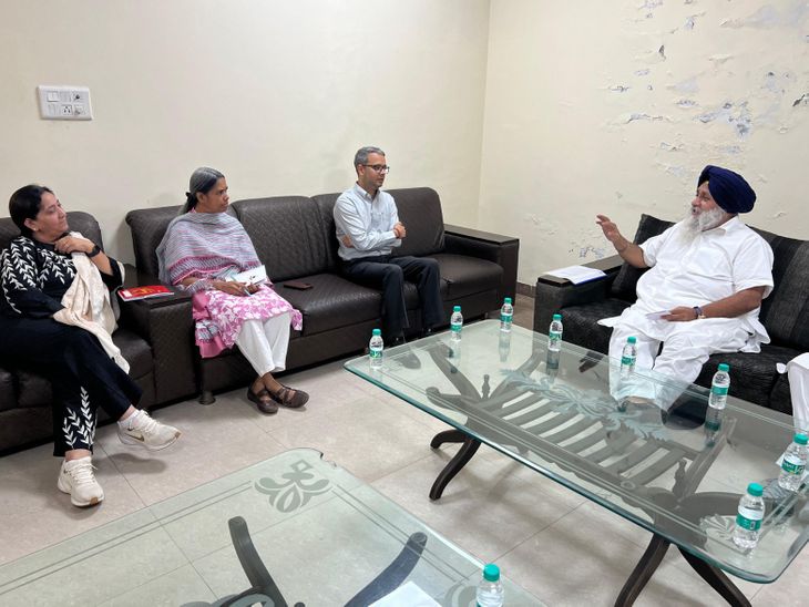चुनाव पर्यवेक्षकों से शिकायत करते सुखबीर सिंह बादल