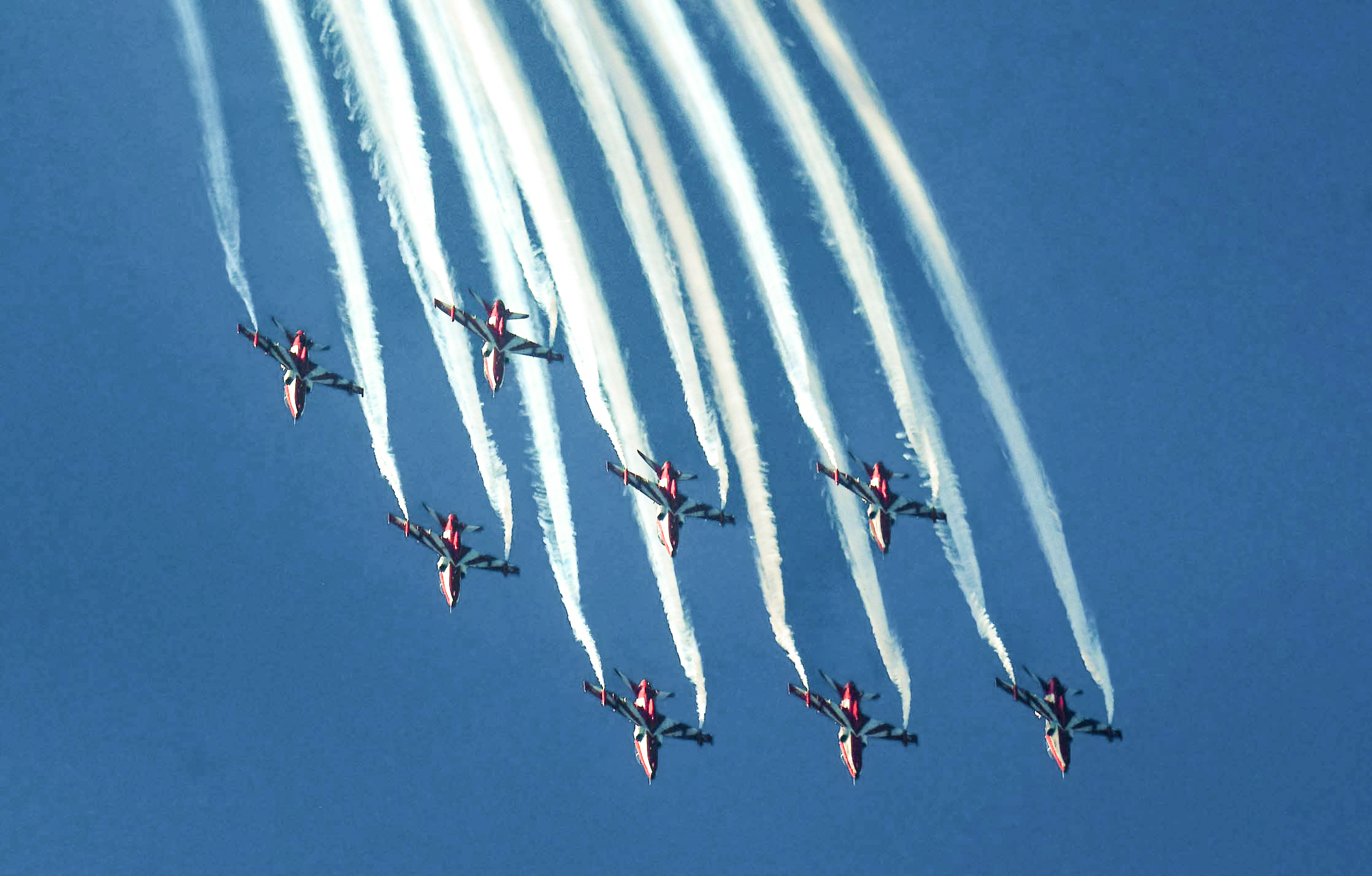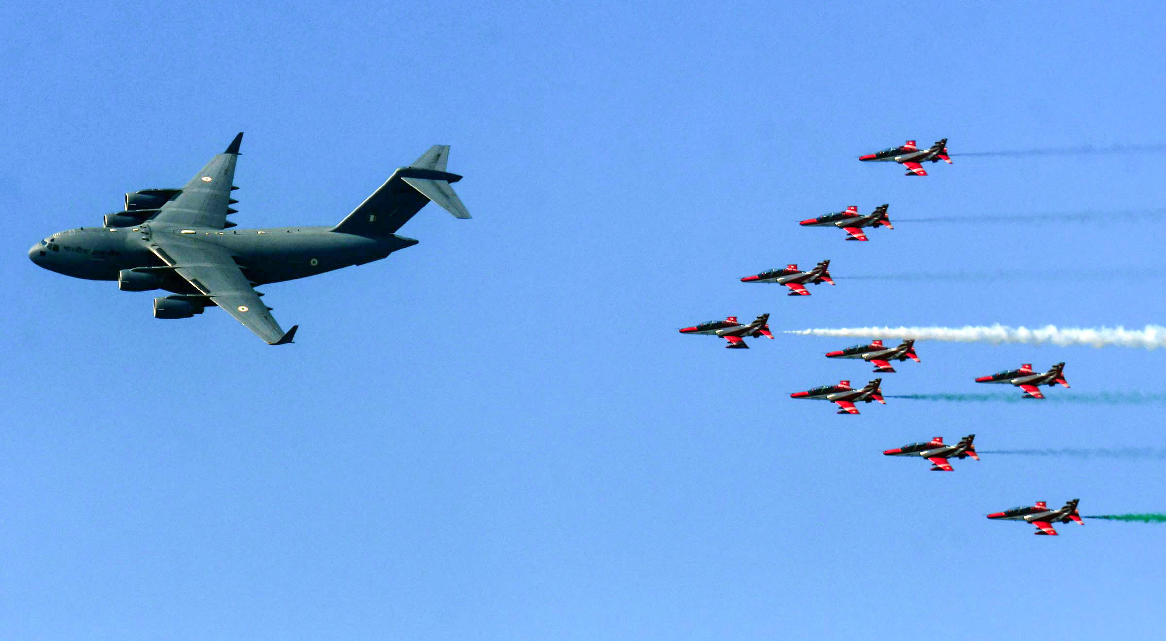 फ्लाइंग डिस्प्ले के लिए वायुसेना के वॉरियर्स ने गुवाहाटी, तेजपुर, जोरहाट, छाबुआ, हासीमारा, बागडोगरा और पानागढ़ से उडान भरी। लड़ाकू विमानों में राफेल, सुखोई-30, अपाचे, मिग-29, आईएल-78 रिफ्यूलर, मिराज, जगुआर, सी-17 ग्लोबमास्टर, एमआई-17, एडवांस्ड लाइट हेलीकॉप्टर-एमके1, सी-130 हरक्यूलिस, एंटोनोव एएन-32 और सूर्य किरण विमान शामिल हुए।