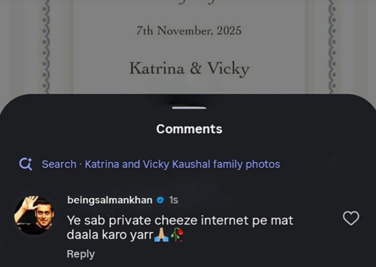 प्रोफेशनल वर्क के अलावा सलमान खान हाल ही में सोशल मीडिया पर वायरल हो रहे एक फर्जी कमेंट के चलते भी सुर्खियों में हैं। हाल ही में कटरीना कैफ और विक्की कौशल ने पेरेंट्स बनने की अनाउंसमेंट की है। इसके बाद एक फर्जी पोस्ट वायरल हुआ है, जिसमें दावा किया जा रहा है कि सलमान खान ने विक्की-कटरीना की पोस्ट पर कमेंट किया है। हालांकि ये कमेंट पूरी तरह फर्जी है।