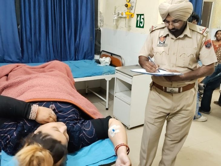 अस्पताल में महिला के बयान दर्ज करते हुए पुलिस।