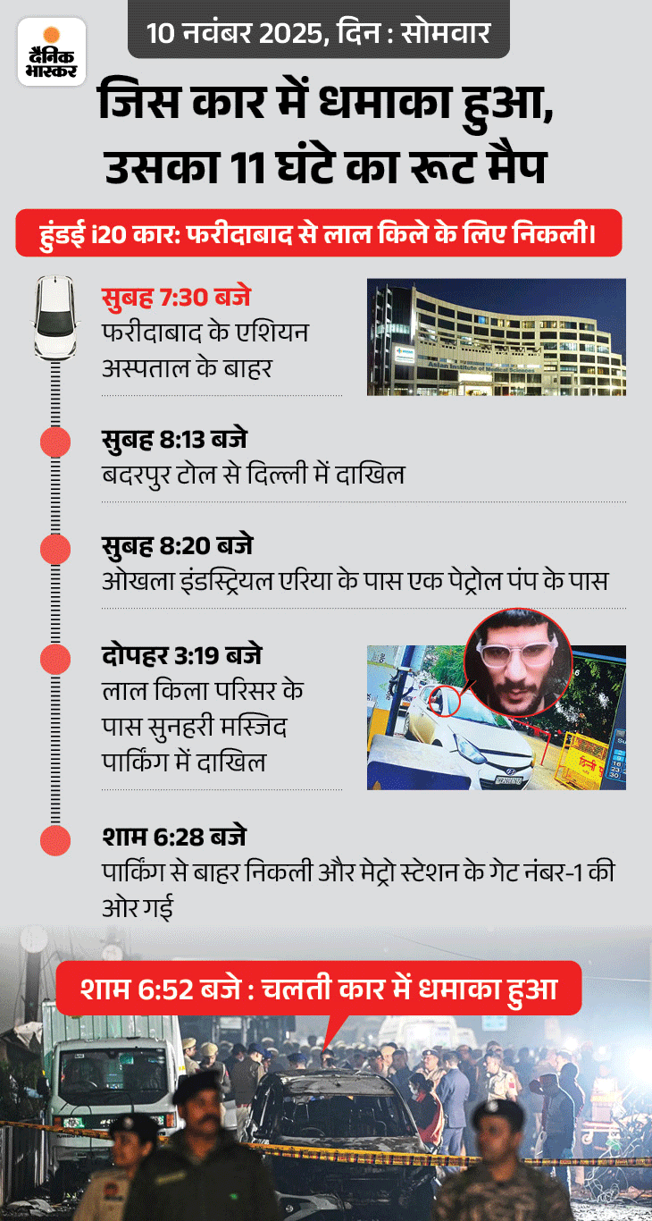 जिस कार में धमाका हुआ, उसका 11 घंटे का रूट मैप