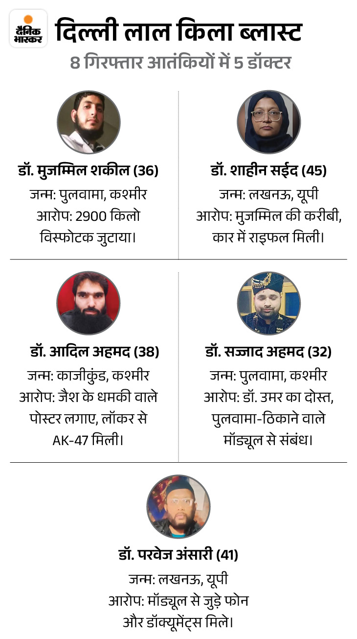 दिल्ली ब्लास्ट केस में 8 अरेस्ट, इनमें 5 डॉक्टर