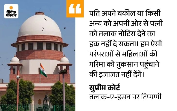 कोर्ट ने कहा- कोई तीसरा पक्ष महिला को उसके पति की ओर से तलाक नोटिस कैसे दे सकता है? क्या यह कानूनी है? तलाक देने के लिए इस तरह के अविष्कार कैसे किए जाते हैं? समुदाय इस तरह की प्रथाओं को कैसे बढ़ावा दे रहा है? इसमें पूरा समाज शामिल है। सुधार के लिए कुछ किया जाना चाहिए। अगर समाज में घोर भेदभावपूर्ण प्रथाएं हैं, तो कोर्ट को दखल देना होगा।