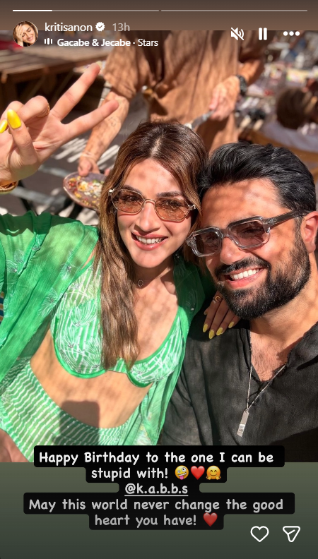 कृति ने कबीर के साथ वेकेशन की तस्वीर शेयर करते हुए लिखा है, “जन्मदिन मुबारक उस इंसान को जिसके साथ मैं पूरी बेवकूफी कर सकती हूं। दुआ है कि यह दुनिया कभी भी तुम्हारे अच्छे दिल को न बदल सके।”