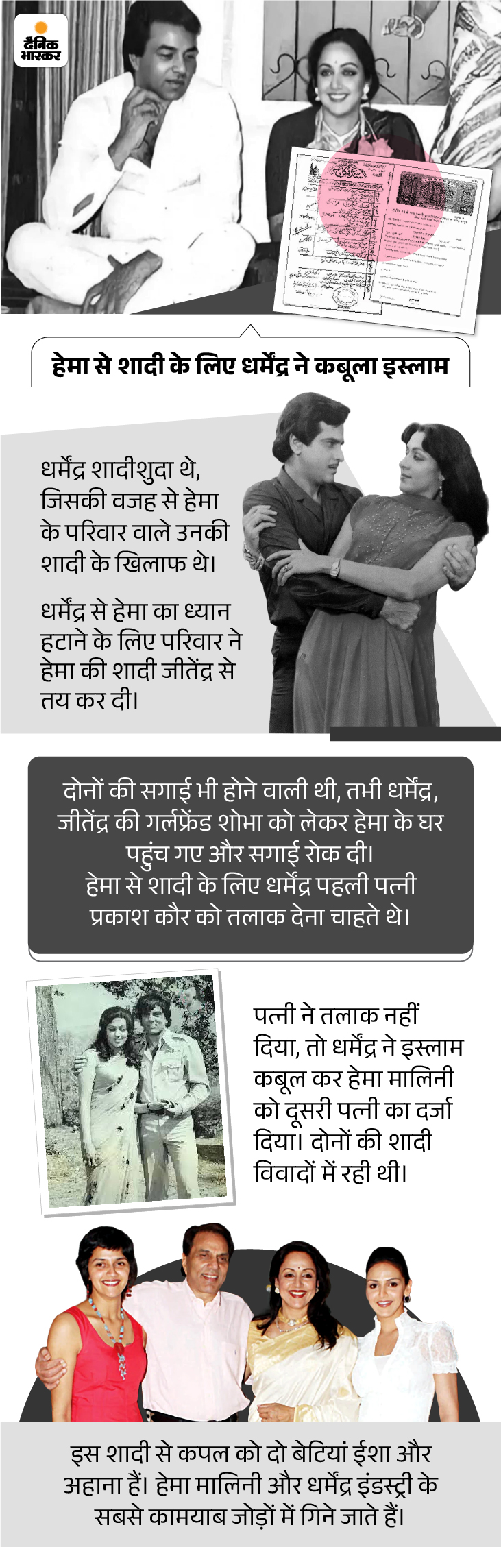 धर्मेंद्र ने जीतेंद्र से हेमा की शादी रुकवाई:धर्म बदलकर दूसरी शादी की; पहली पत्नी बोली थीं- कोई भी मर्द हेमा से ज्यादा प्यार करता
