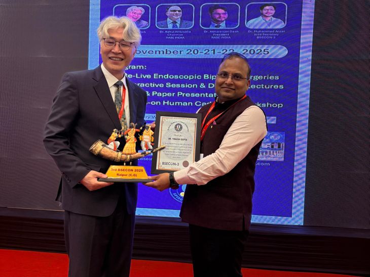 जयपुर के प्रियुष न्यूरो हॉस्पिटल के सीनियर न्यूरो सर्जन डॉ. योगेश गुप्ता को रायपुर में आयोजित एक वर्कशॉप में यूबीई (यूनिलैटरल बायपोर्टल एंडोस्कोपी) तकनीक पर उनके व्याख्यान के लिए सम्मानित किया गया।