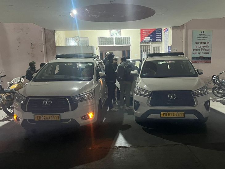 कुरुक्षेत्र में शाहाबाद थाने के बाहर खड़ी NIA की टीम।