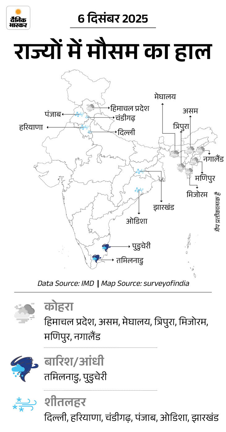 हरियाणा: सर्द हवाओं से ठिठुरन बढ़ी, नारनौल में तापमान में 3.5 डिग्री पहुंचा; 8 दिसंबर से और बढ़ेगी ठंड