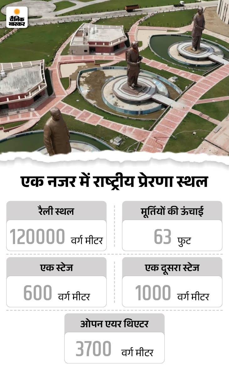 प्रेरणा स्थल की क्षमता 1 लाख लोगों की होगी। इसमें 3 हेलीपैड बनाए जा रहे हैं।