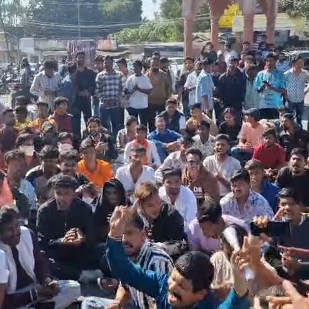 कलेक्ट्री के बाहर धरने पर बैठे हिन्दू संगठन के युवा।
