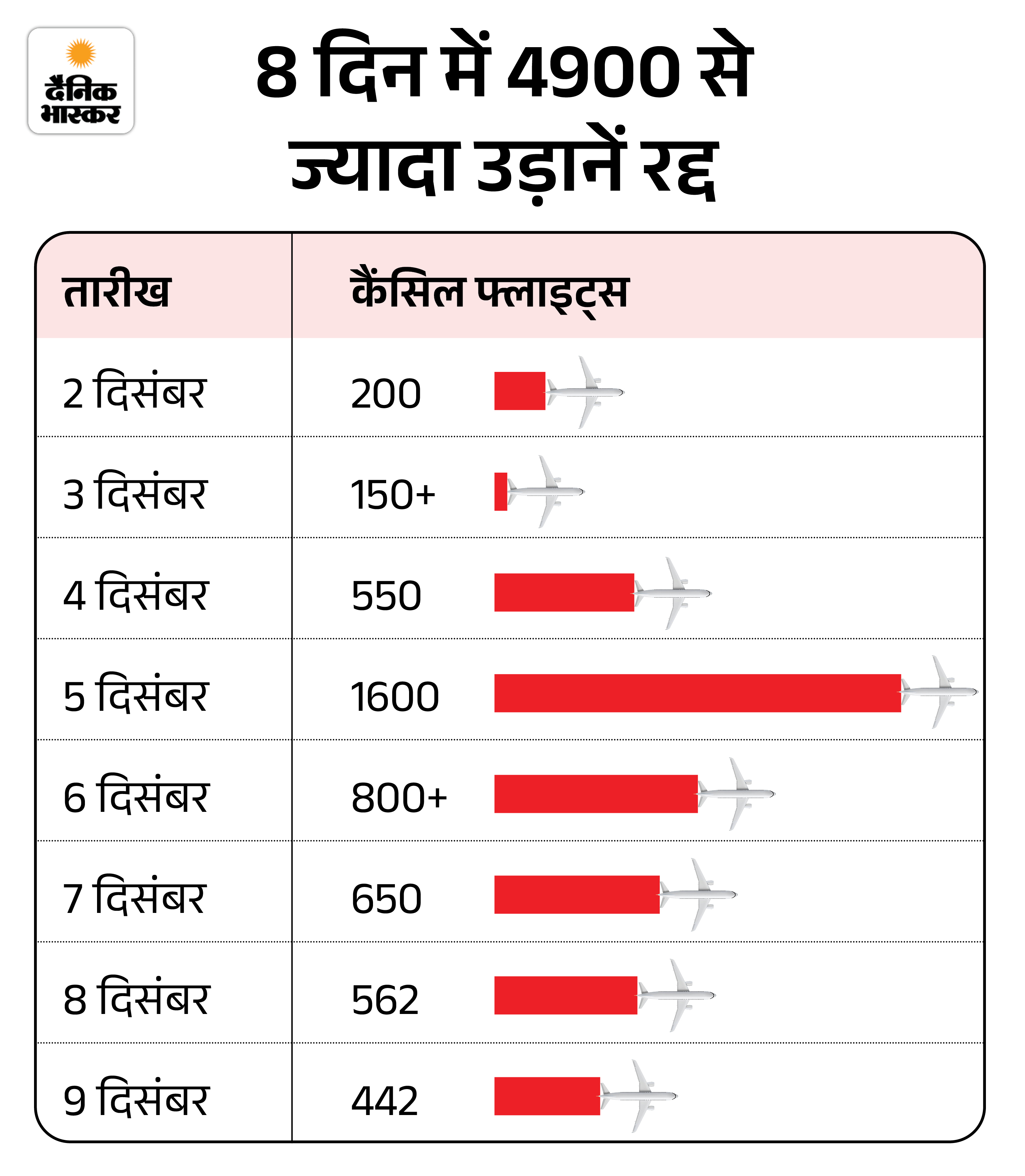 बीते 8 दिनों में (2 से 9 दिसंबर तक) इंडिगो की देशभर में करीब 5000 उड़ानें रद्द हुईं हैं।