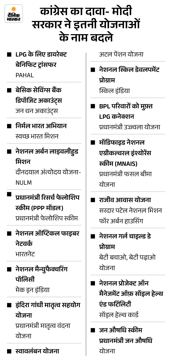 कांग्रेस बोली- मोदी सरकार ने हमारी 32 योजनाओं के नाम बदले