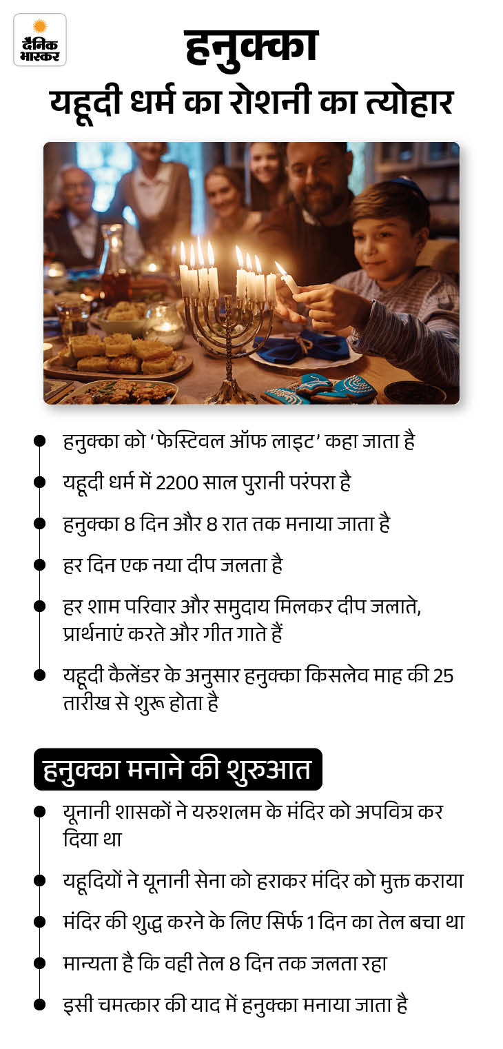 रविवार को घटना के वक्त यहूदी समुदाय के लोग हनुक्का फेस्टिवल मना रहे थे। यह यहूदियों का खास त्यौहार है, जो 14 दिसंबर से शुरू हुआ था।