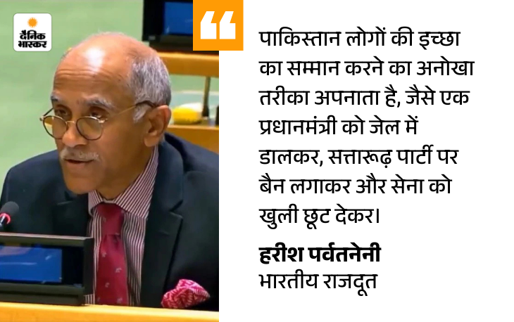 राजदूत ने कहा कि पाकिस्तान में पूर्व प्रधानमंत्री इमरान खान को जेल में डाल दिया गया, उनकी पार्टी पर रोक लगा दी गई, और 27वें संशोधन के जरिए सेना ने संविधान को अपने हिसाब से मोड़ दिया। भारत ने इसे ‘संवैधानिक तख्तापलट’ बताया।