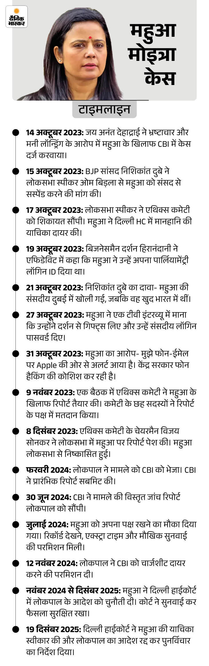दरअसल, यह मामला अक्टूबर 2023 से शुरू हुआ था। जब BJP सांसद निशिकांत दुबे ने मोइत्रा पर महंगे गिफ्ट्स और पैसे लेने के बदले में कारोबारी दर्शन हीरानंदानी के इशारे पर अडाणी ग्रुप और प्रधानमंत्री नरेंद्र मोदी को निशाना बनाने के लिए लोकसभा में सवाल पूछने का आरोप लगाया था।