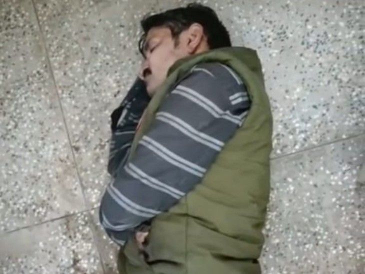 उपभोक्ता संरक्षण आयोग कार्यालय में फर्श पर लेटा चतुर्थ श्रेणी कर्मचारी विजय सिंह।