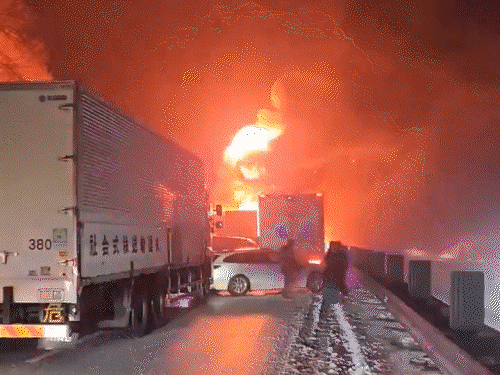 जापान में 60 से ज्यादा गाड़ियां टकराईं: कई गाड़ियां जलकर खाक, 2 की मौत, 26 घायल; बर्फीला मौसम बना वजह