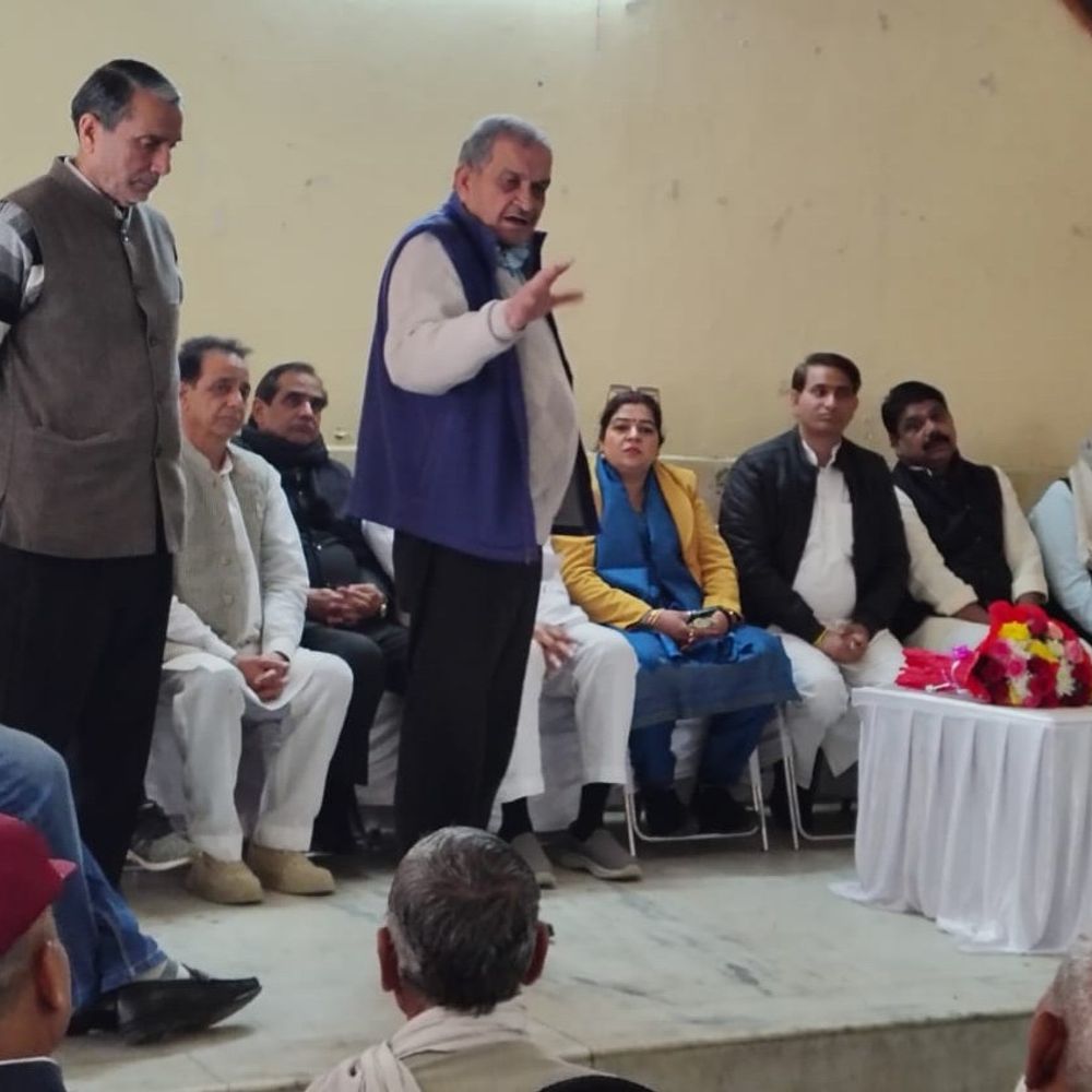 पलवल की जाट धर्मशाला में बैठक को संबोधित करते पूर्व केंद्रीय मंत्री चौधरी बिजेंद्र सिंह।