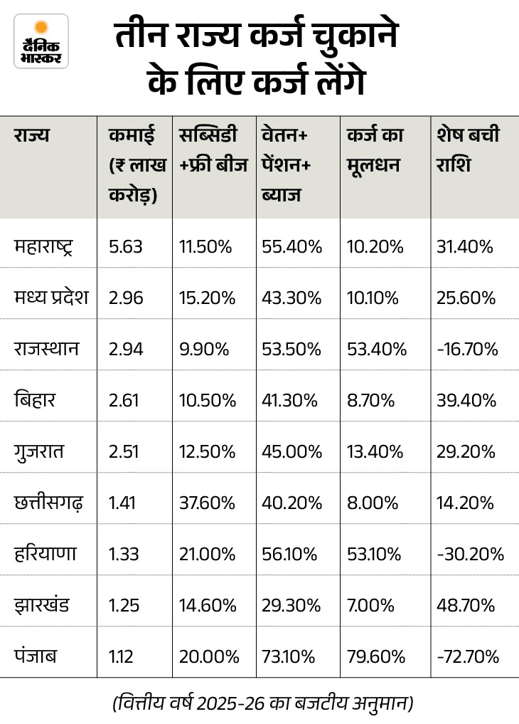 राजस्थान को इस बार ₹1.50 लाख करोड़ कर्ज का मूलधन चुकाना है। वह 32 हजार करोड़ रुपए कर्ज ले चुका है, लेकिन बकाया तो कर्ज लेने की सीमा से भी ज्यादा है। उसे कर्ज चुकाने के लिए भी कर्ज लेने की जरूरत पड़ेगी।