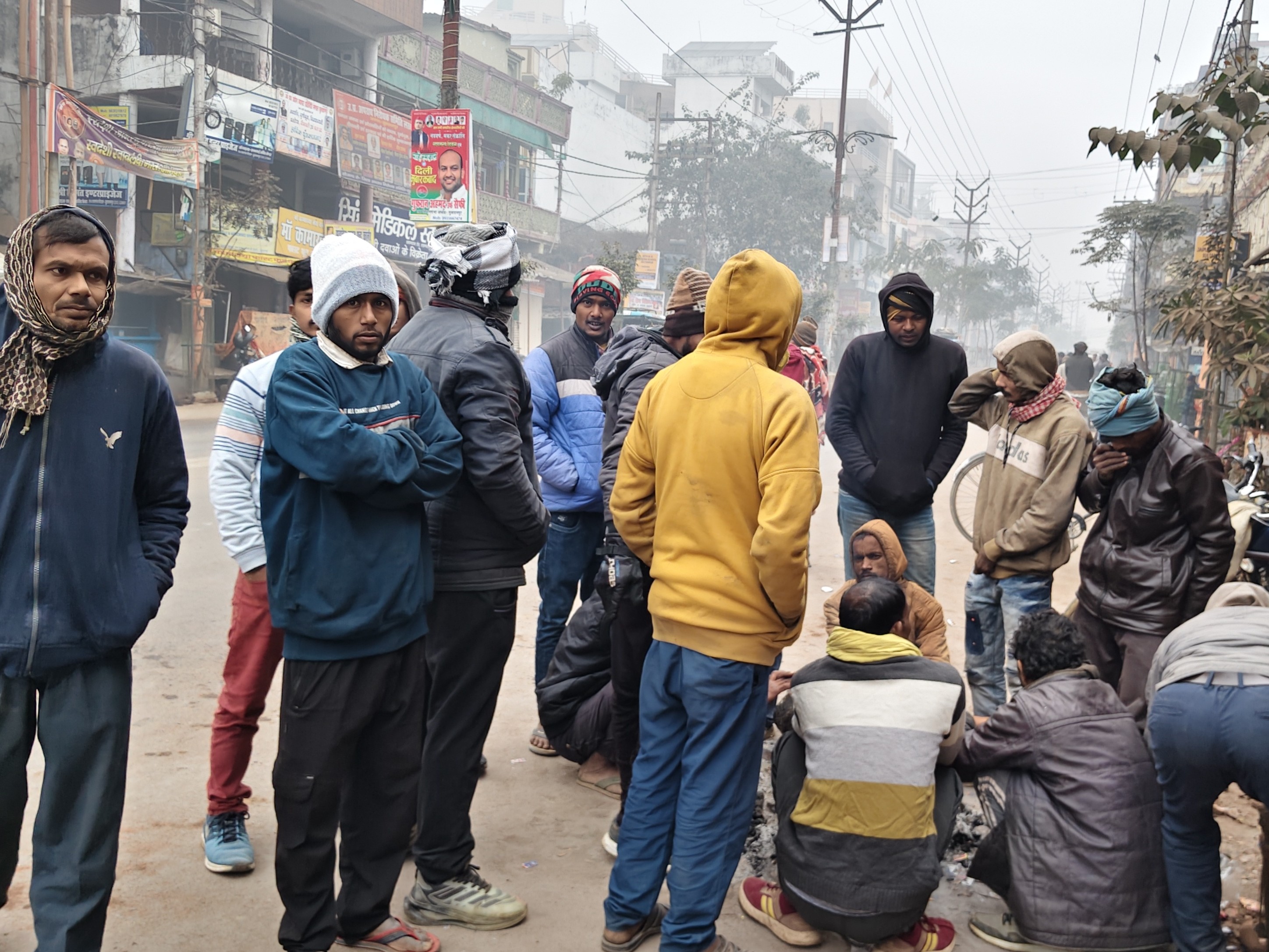 एक अन्य मजदूर रामनाथ ने बताया कि वे काम के लिए आए हैं। उन्होंने कहा, “रोजाना लकड़ी जलाई जाती है, लेकिन आज यहां लकड़ी उपलब्ध नहीं है। हम यही मांग करते हैं कि चौराहे पर अलाव जलाया जाए ताकि सभी को राहत मिल सके। यहां प्रतिदिन लगभग एक हजार मजदूर आते हैं।”