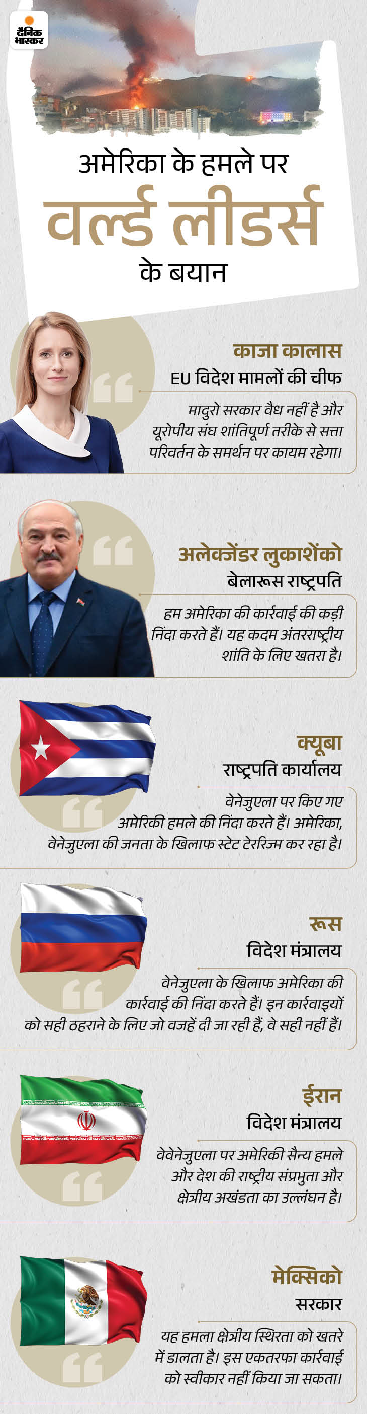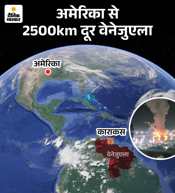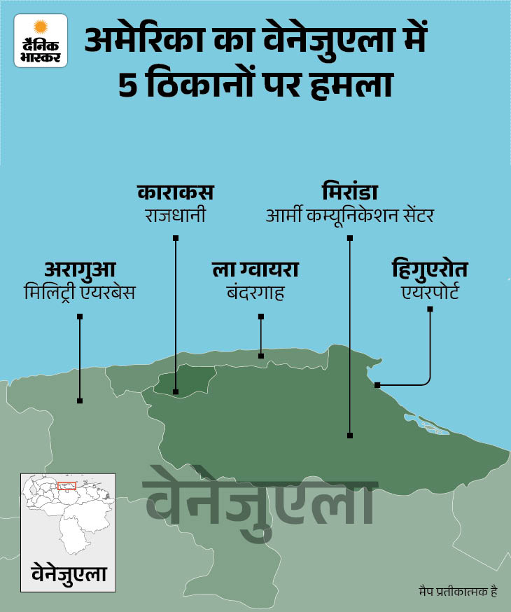अमेरिका ने बीती रात करीब 2 बजे (भारतीय समय के मुताबिक शनिवार सुबह 11:30 बजे) वेनेजुएला के 4 शहरों पर हमले किए थे।