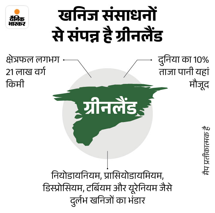 - प्राकृतिक संसाधन: ग्रीनलैंड में दुर्लभ खनिज, तेल, गैस और रेयर अर्थ एलिमेंट्स के बड़े भंडार माने जाते हैं, जिनका भविष्य में आर्थिक और तकनीकी महत्व बहुत ज्यादा है। चीन इनका 70-90% उत्पादन नियंत्रित करता है, इसलिए अमेरिका अपनी निर्भरता कम करना चाहता है।