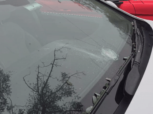 कार के फ्रंट शीशे पर लगी गोलियां।